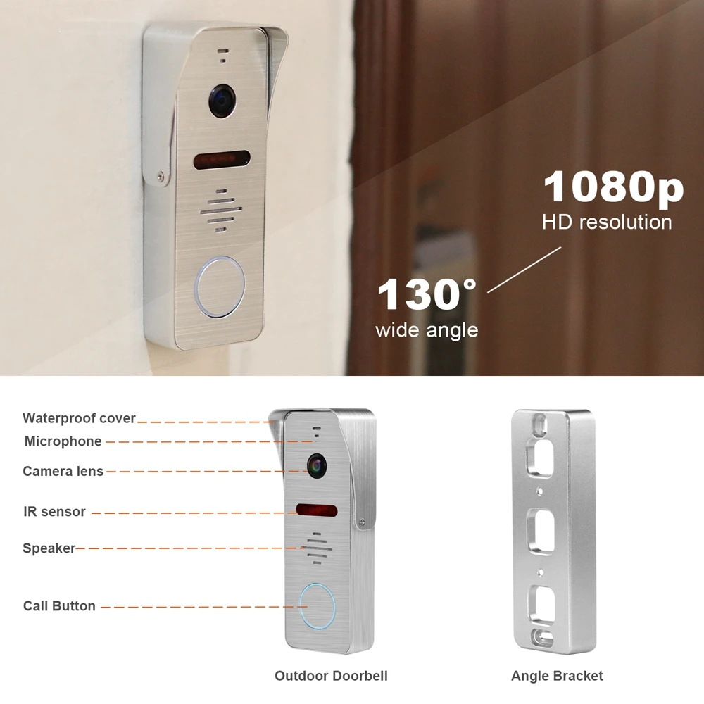 HomeFong Video Doorbell Home Intercom Video Door Phone 7 inch Monitor 1200TVL Doorbell Camera 32G Memory Card Video Intercom Kit
