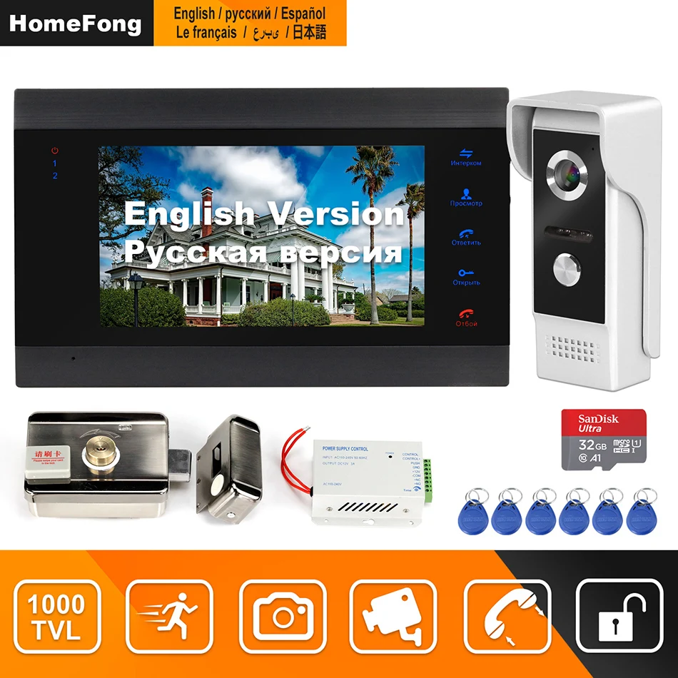 Homefong Wired Video Door Phone with Lock video intercom for Apartment Home Electric Lock Access Control System 3A Power Control